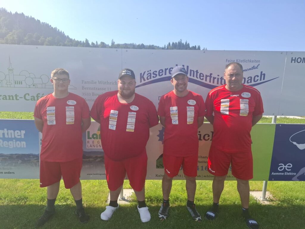 Bei heissem Augustwetter und tückischem Blau bestätigte die B in Arch ihre starke Riesform, liess sich am Bock aber die länger andauernde Sommerpause noch etwas anmerken. 0 Nummern und 726 Punkte reichten letztlich aus, um Gegner Arch zu «bodigen». Sonntags lief es der «Équipe rouge» riestechnisch etwas weniger: Gleich zweimal musste das Wälti-Ensemble die Spritzguss-Scheibe vom Hab und Gut Mosimanns kratzen, während am Bock auch dank Unterstützung der A-Mannschaft eine Leistungssteigerung gelang. Mit 2 Nummern und 870 Punkten schickte man auch den zweiten Seeländer-Vertreter dieses Wochenendes als Verlierer vom Platz. Wälti und Co. sind damit in den Startlöchern für die kommenden Feste!
