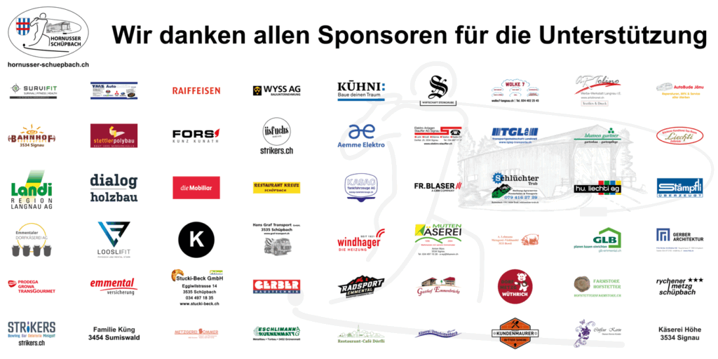 Auch in dieser Saison wird die HG Schüpbach durch zahlreiche Sponsoren unterstützt – wir danken Euch herzlich für die wertvolle Zusammenarbeit und freuen uns auf weitere erfolgreiche Jahre! «Merci viumau!»